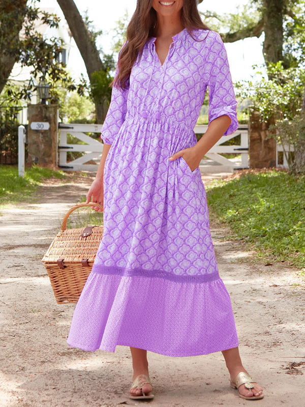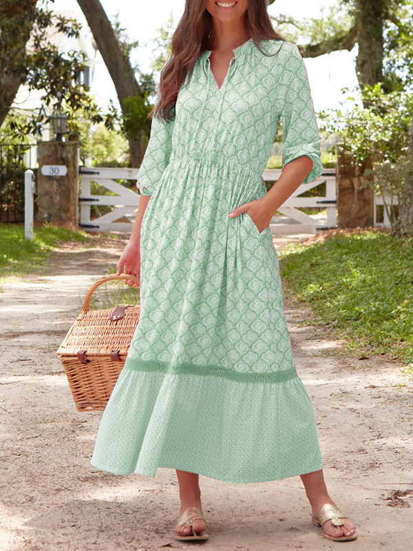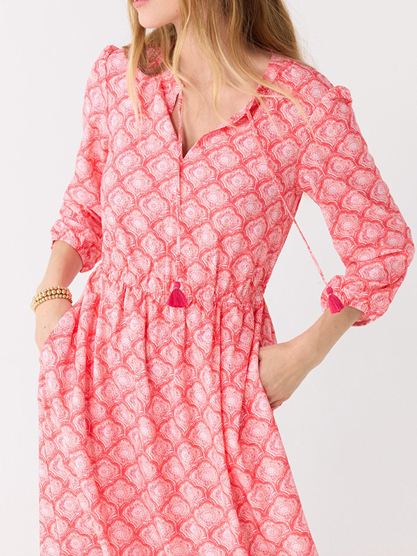 Timeless Elegance: Drawstring Round Neck Printed Dress