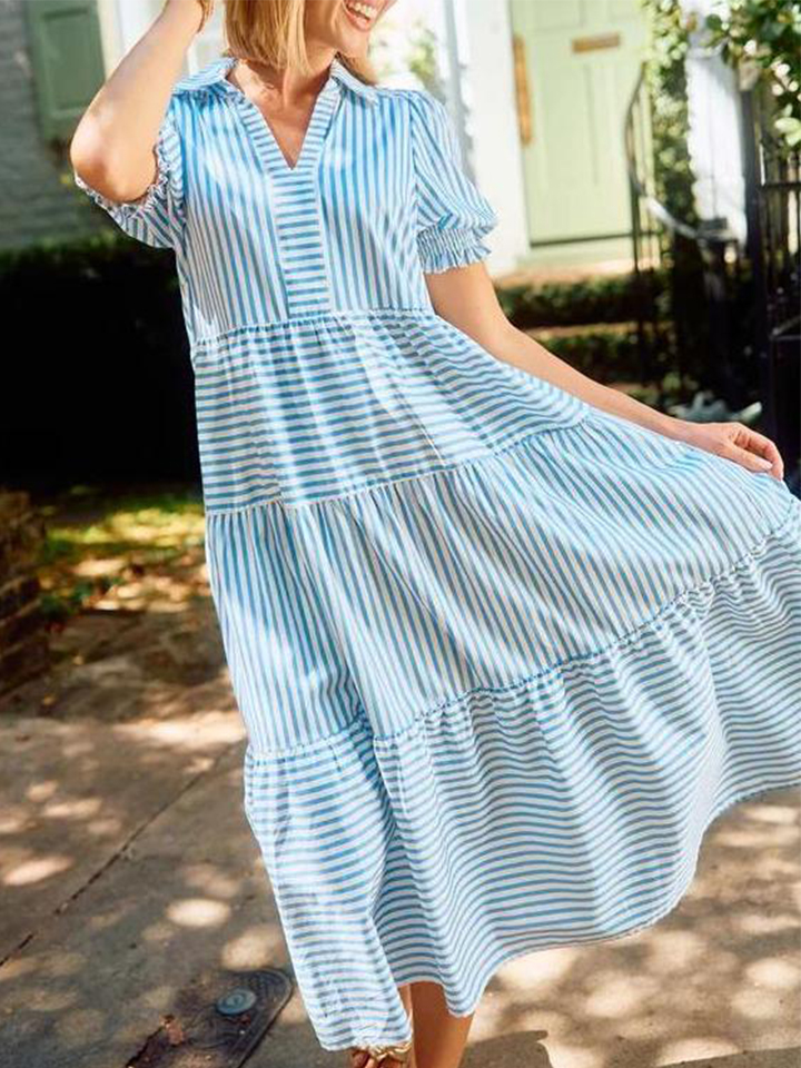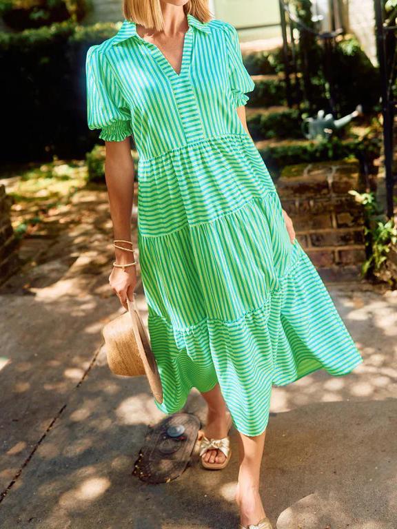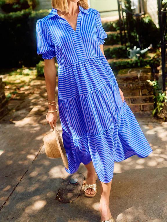 🔥 Two for $69.99 Only + free shipping🔥Special price of $37.99( Taxes included ) for a limited time, if the price goes back to$75.98 it means the event has ended!!! Don't miss out!The V-Neck Pleated Short Sleeve Striped Shirt Dress is a delightful blend of sophistication and sweetness that's perfect for any occasion. Falling gracefully at midi-length, this dress exudes timeless charm, making it an ideal choice for both casual outings and special events. The dress features a classic collar, adding a touch of elegance, while the smocked short puff sleeves provide a playful and feminine twist.Features��Featured pocketsPleated short sleevesFolded collarLayered skirtCottonWashing instructions:Machine washableMachine wash coldHang to dryIron if necessarySIZE CHART:🔒 100% Risk-Free Purchase🔥If you bought it and felt that it is not for you, don't worry. Just shoot us a message and we will make it right by offering you a replacement or refund. 100% Simple Risk-Free process.* LIMITED stock, Click ADD TO CART before stock runs out!